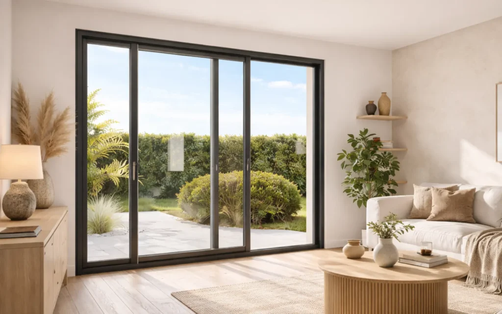 Les vantaux glissent latéralement sans empiéter sur l’espace intérieur. Parfaite pour les grandes ouvertures, les balcons ou les pièces où chaque centimètre compte. Elle apporte un maximum de lumière avec des profilés fins et un design épuré.