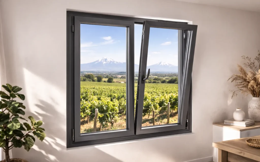 En battant classique ou en oscillo, basculée sur l’axe bas pour aérer en toute sécurité. Idéale pour les pièces où vous voulez ventiler sans ouvrir en grand — salle de bain, cuisine, chambre d’enfant. C’est l’option que je recommande le plus souvent pour son côté pratique.